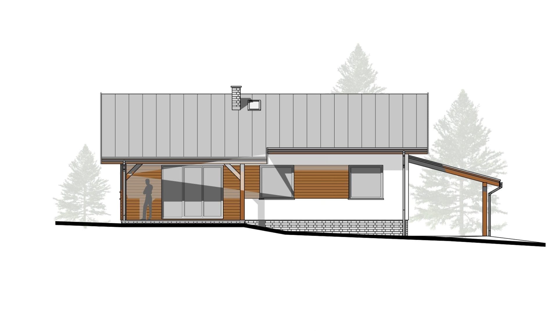 Parter budynku zaplanowano jako strefę całodzienną.