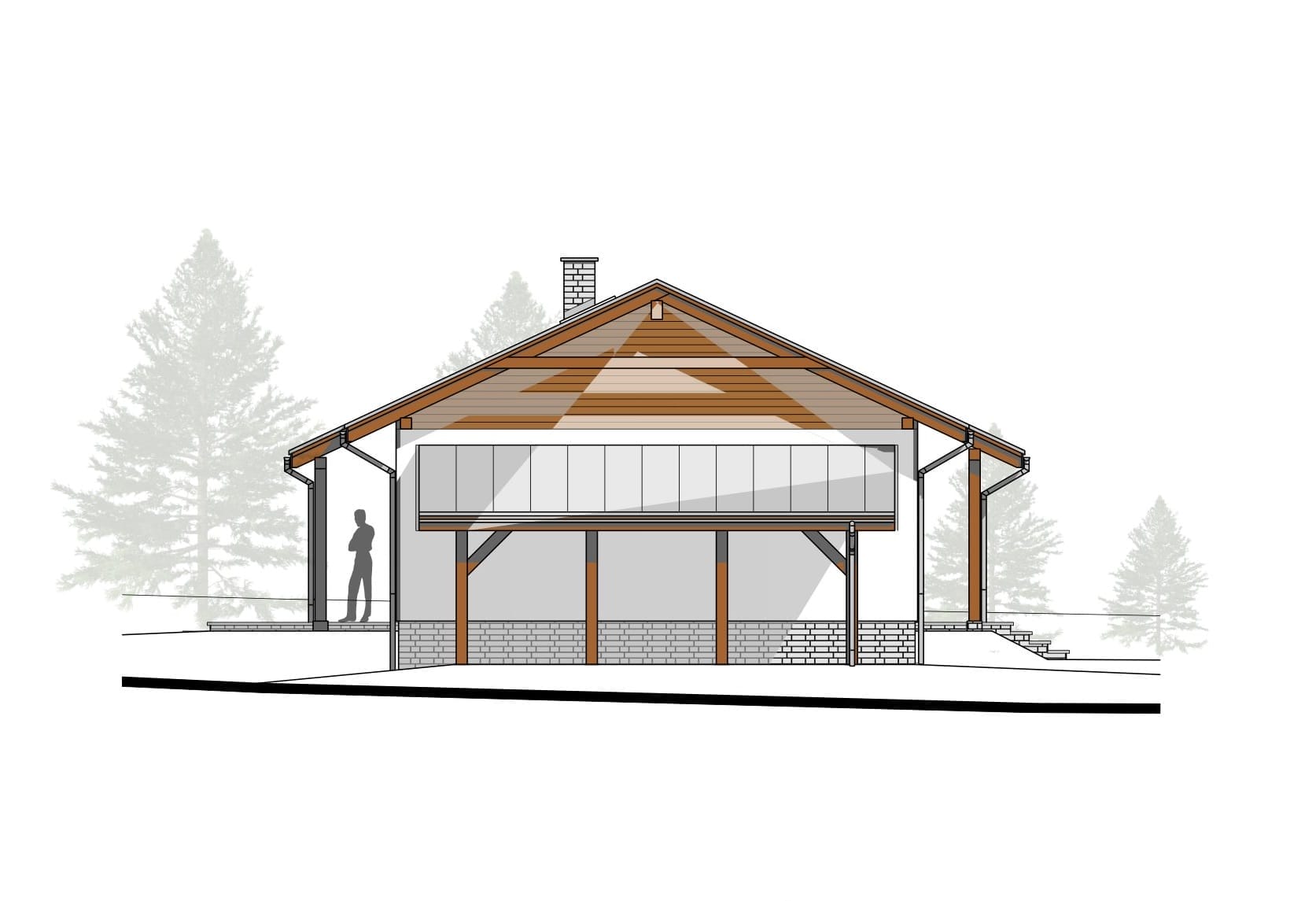 Foundation walls are designed as poured walls up to the level of horizontal wall insulation. Internal load-bearing walls – act as the load-bearing structure of the ceiling and roof.