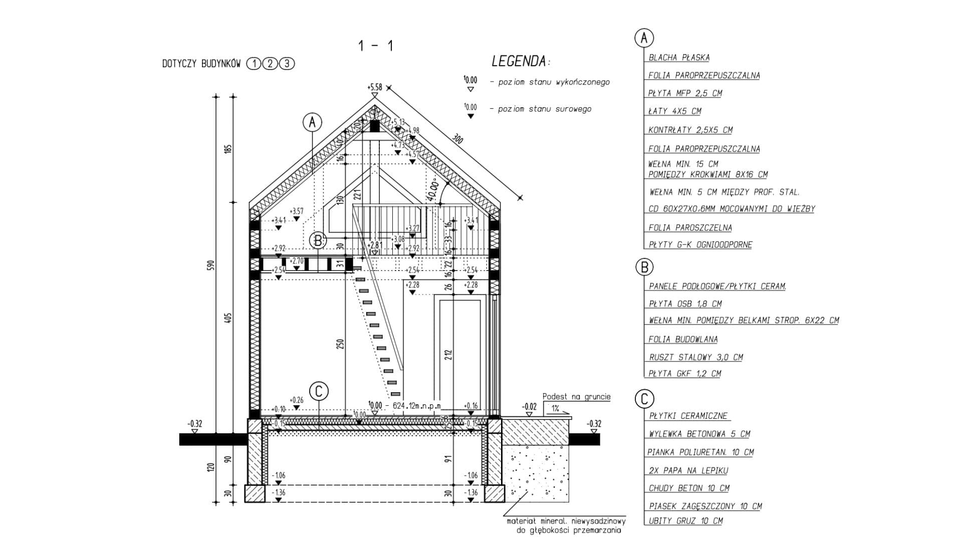It is a recreational building – intended for temporary rental, without a basement, having a first floor and a usable attic with a gable roof (slopes inclined at an angle of 40 degrees).