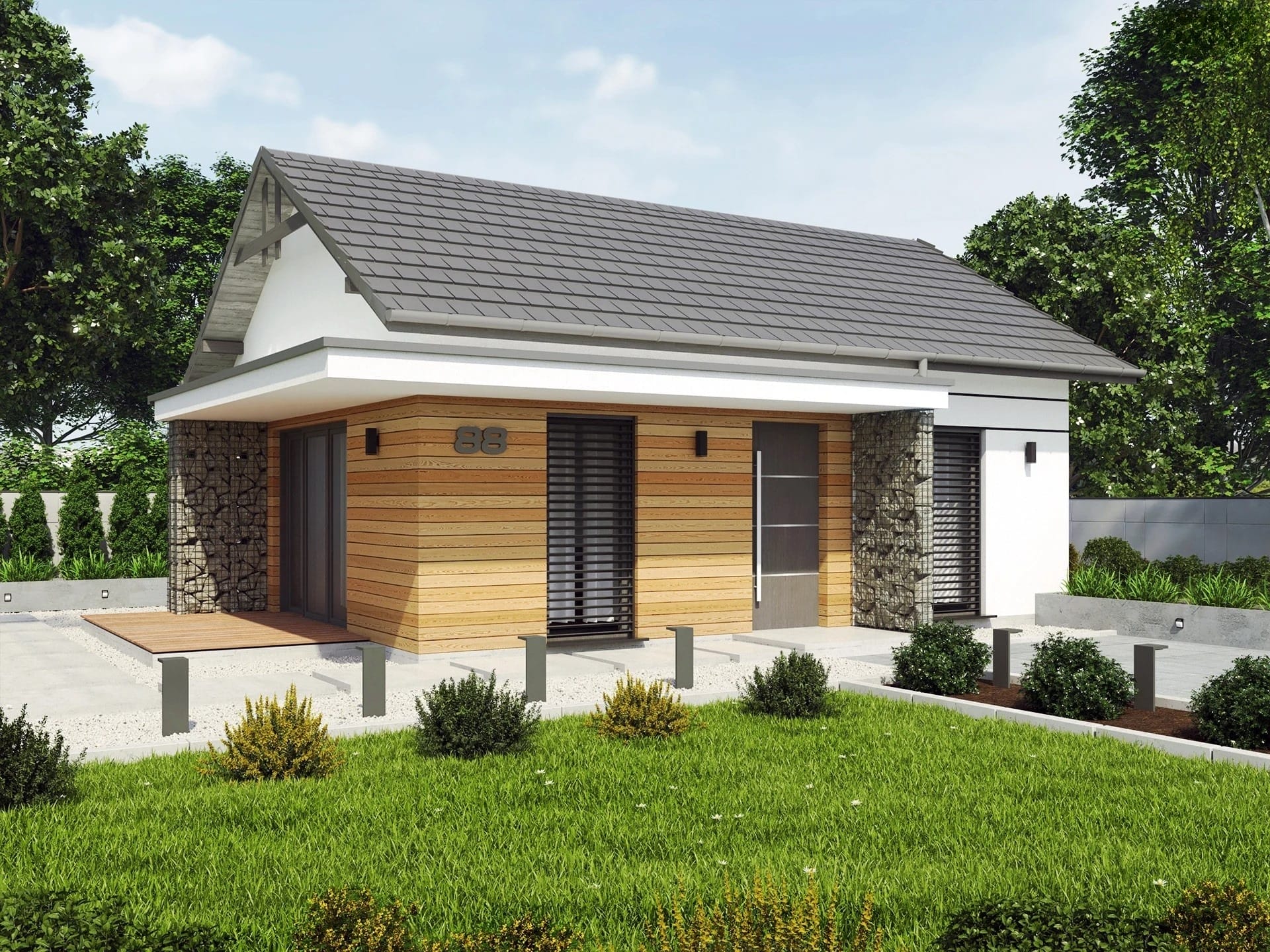 LEON project of a single-storey detached summer house This bungalow is a variant of the LENS project only that with a gable roof.
