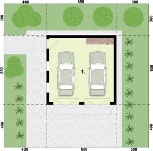 – wymiary bram garażowych 2,3×2,4mTechnologia szkieletowa: Zapytaj o dostępność projektu