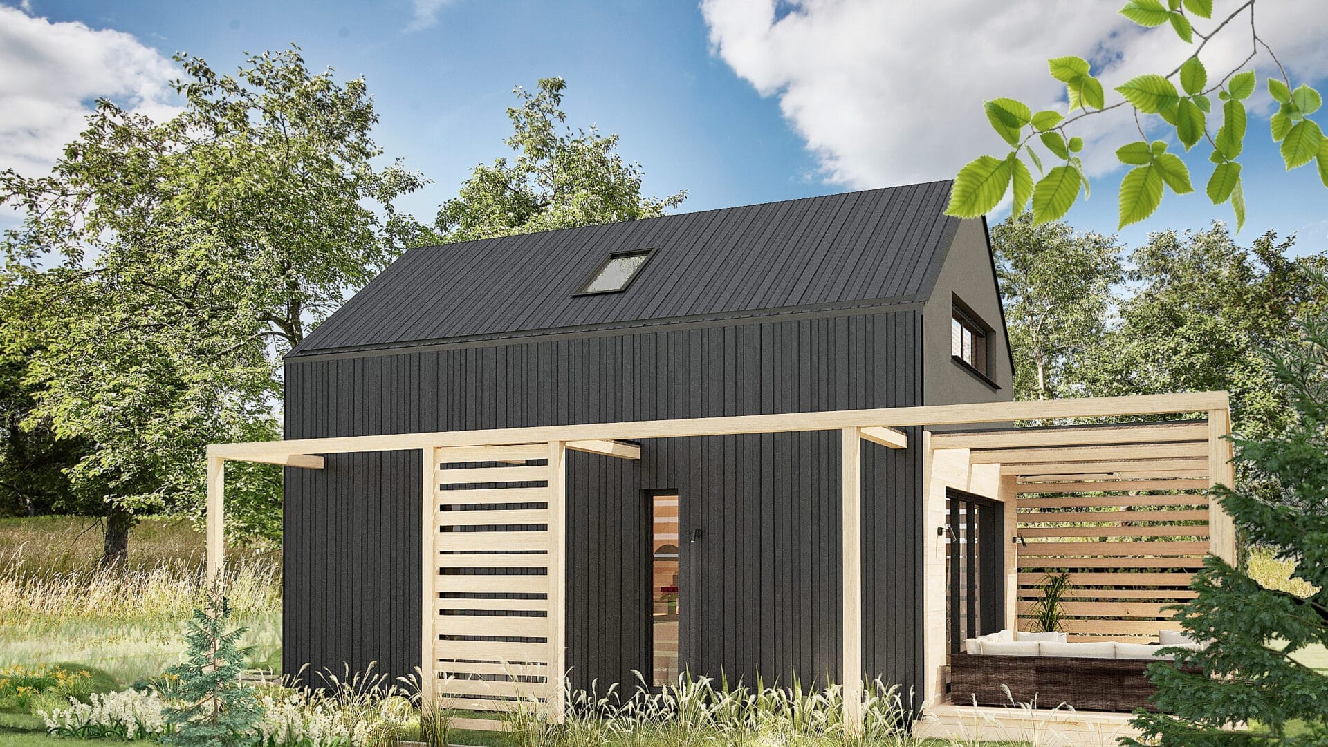 to modułowy dom uniwersalny. Niezależnie czy szukasz małego domu dla Twojej rodziny, taniego domu modułowego, rekreacyjnego. Jeśli chcesz zbudować siedlisko z domów modułowych pod wynajem – OPTIMO odpowie na Twoje potrzeby. W domu na parterze znajdziesz wygodna przestrzeń dzienną a w niej przestronny jasny salon z dużymi oknami i wyjściem na ogród. Na poddaszu czeka na Ciebie strefa nocna z dwoma wygodnymi sypialniami dla czterech osób (jedna z garderobą) i łazienką. OPTIMO to idealny kompaktowy dom, który da CI dużą nie zależność.