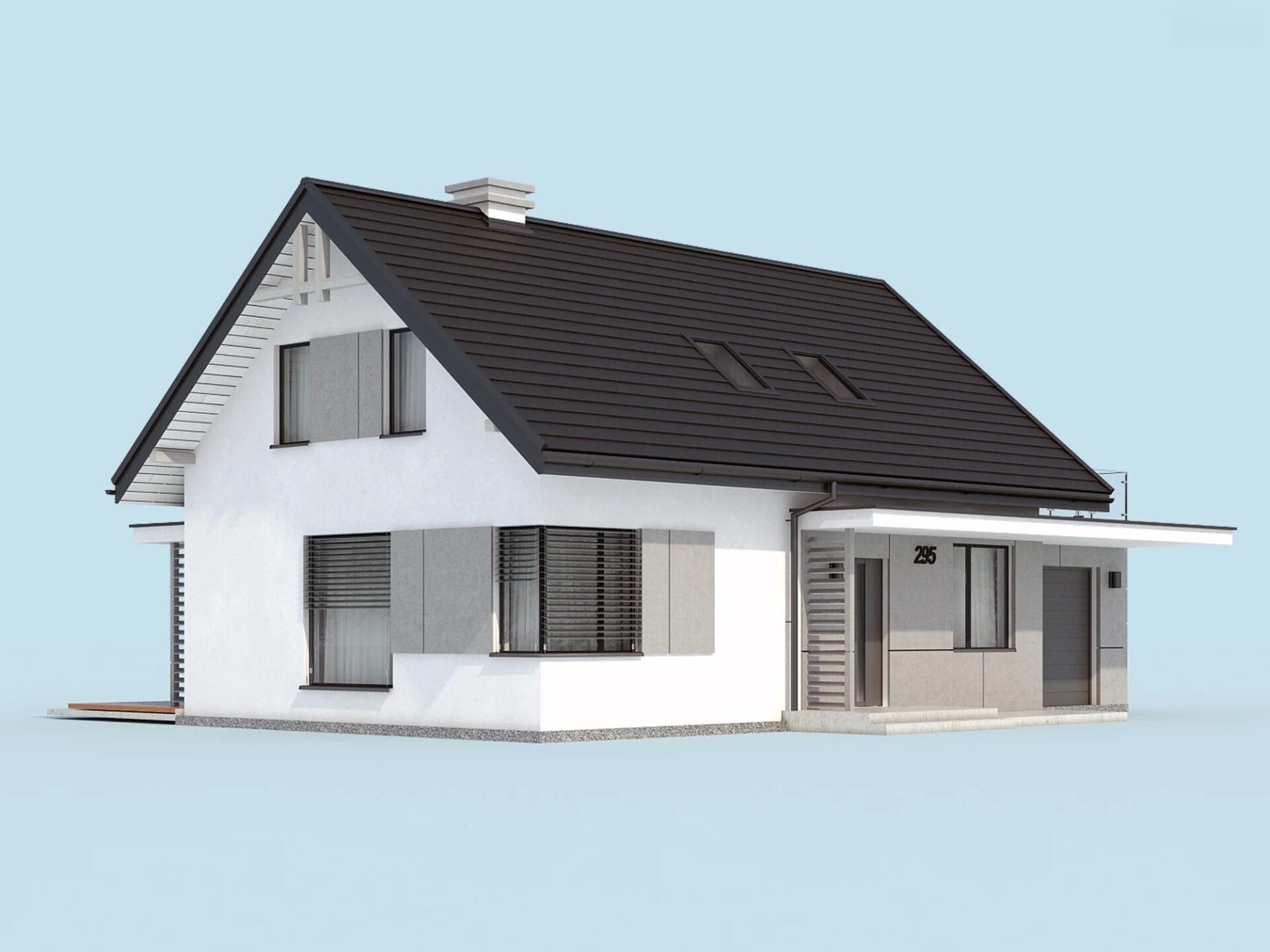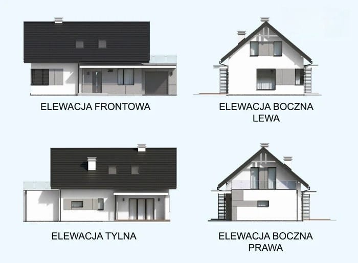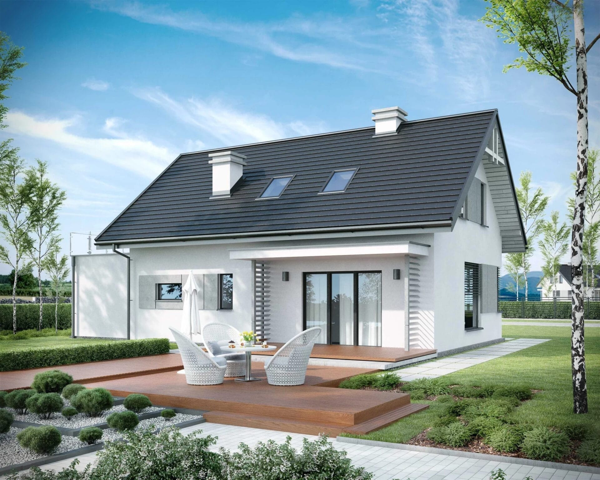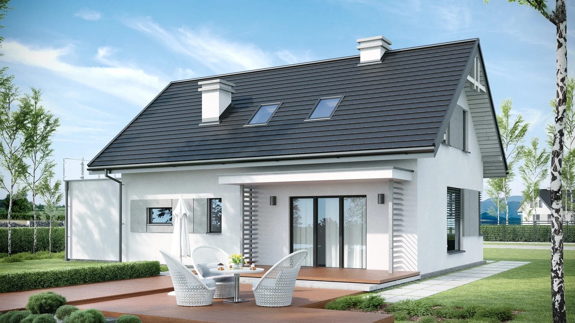 TRYPOLIS 3 – dom parterowy z poddaszem w technologii szkieletowej.
