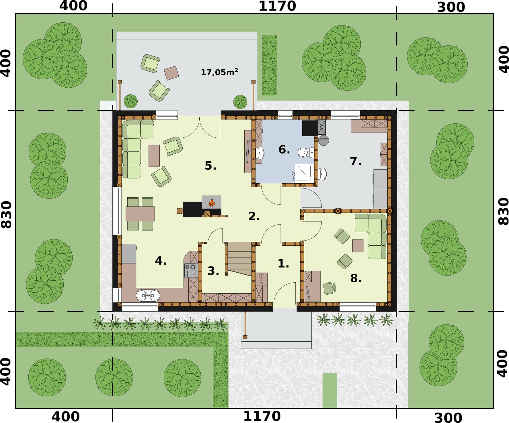 | pow. tarasów/werandy/wiaty/schodów zew. | 17,05 m² |